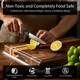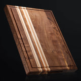 Senken Knives' extra thick triple wood cutting board is uniquely made from select grades of Walnut, Cherry, and Maple Wood, making it a beautiful, one-of-a-kind addition to any kitchen.