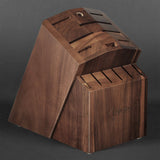 The 7 main knife slots range in width to accommodate any knife from a small paring knife all the way to a slot for an extra wide cleaver knife.
