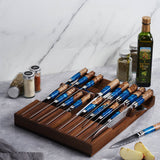Premium Acacia Hardwood In-Drawer Knife Storage Block that fits conveniently inside any standard kitchen drawer.
