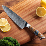 Achieve culinary perfection in style with the Tenjin 8" Damascus Steel Chef's Knife.