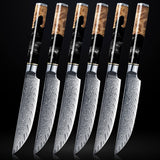 "Black Tsunami" Japanese VG10 Damascus Steel Steak Knife Set - Black Resin Burl Wood Handle