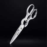 Introducing the Dynasty Kitchen Scissors, the perfect fusion of function and form for the discerning chef or home cook. The Dynasty scissors are a pair of multi-purpose kitchen scissors made of extra-durable 7Cr17 Stainless Steel and a ruthlessly sharp micro-serrated blade that provides unparalleled strength, control, and cutting power. They allow you to effortlessly cut through poultry, fish, vegetables, herbs, and more.