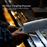 Each blade undergoes an extensive 55-hour vacuum heat treatment followed by annealing and a cryogenic process, to ensure maximum durability & edge retention. The blade is double beveled with a 15° edge that allow extreme sharp and precise cuts.