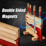 Powerful neodymium magnets built into the wood block draw in the blade of your kitchen knives, allowing for quick and easy storage as well as aesthetic display. Multiple rows of magnets are embedded within the wood are multiple to keep your knives completely secure without any risk of them ever falling.