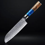 Impeccable Craftsmanship meets Artistic Mastery with the Tsunami Damascus Steel Santoku Knife.